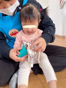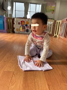 りす組のお友だちも保育者と一緒に玩具をふきふき💕