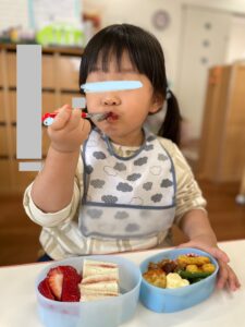お弁当箱の蓋を開けると、「うーん美味しそう☺️」「どれにしようかなぁ」と、お話も弾んでいましたよ。