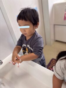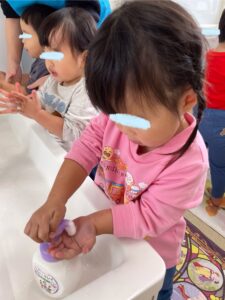 手洗い教室で覚えた歌を歌って楽しく手洗い🫧