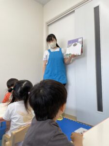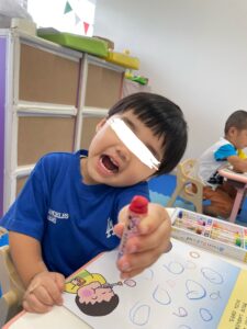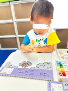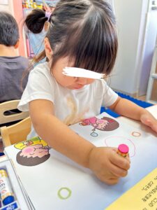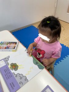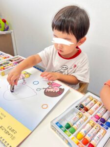 「せんせ!赤だよ〜🖍️」いろんな色の名前も覚えてきましたね☺️