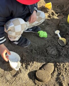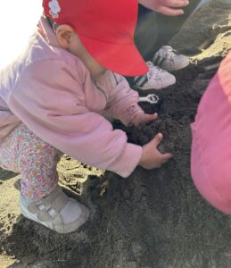 お砂場では「宝探しだよー!」と