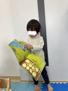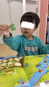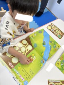 みんなとやった月刊絵本のシール貼り