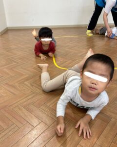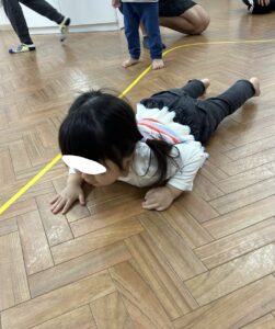 うつ伏せになり、片手ずつ前に出してほふく前進🎵や