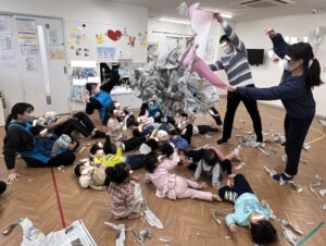 最後は新聞紙遊びをしました。